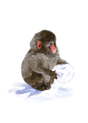 Иллюстрация к стихотворению Виталия Кораблёва «Обезьянка и снег» Обезьянке снег — утеха, Море шалостей и смеха, Радость светится в глазах, Снег на шубке и руках.